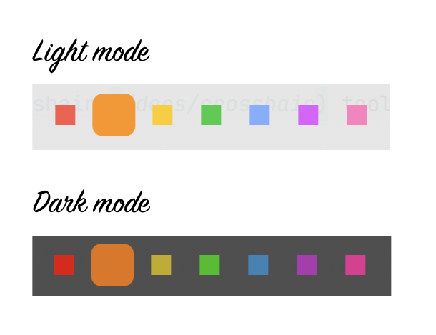 all the supported colors. They are slightly different for the Light and Dark modes.